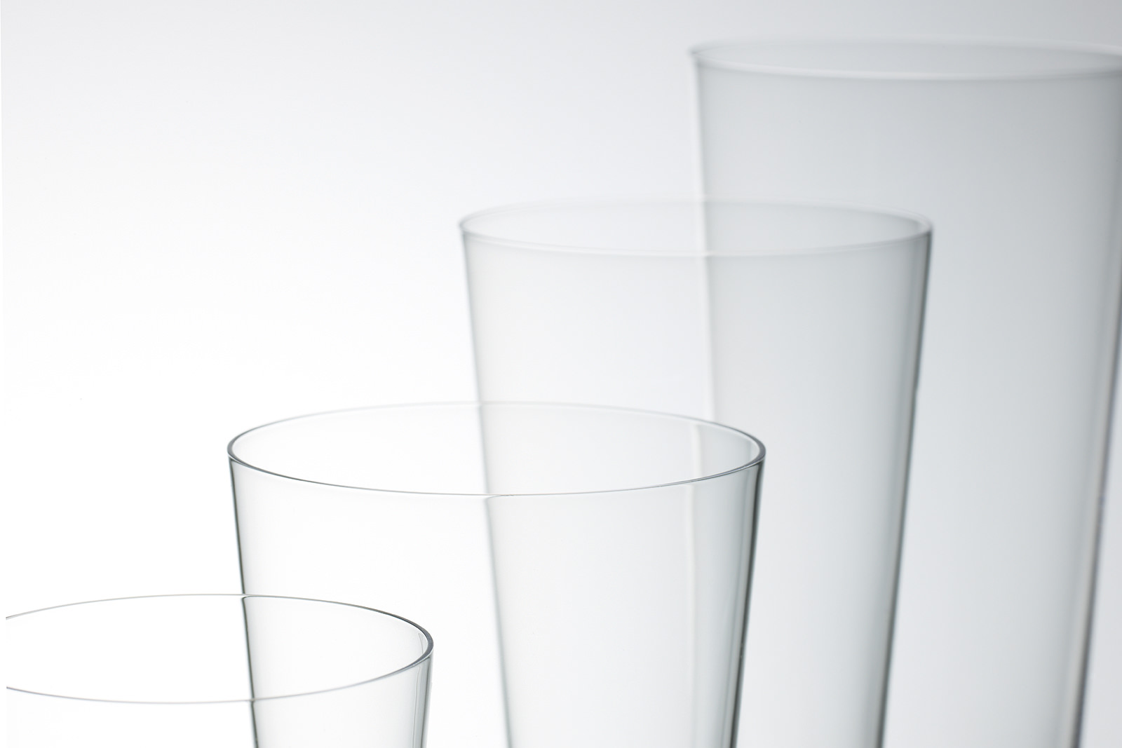 无色透明的玻璃杯,从杯口到杯壁杯底,全部呈1毫米以下的均一厚度。喝上一口,那种无法比拟的细腻触感,甚至令人产生变换了口味般的错觉。